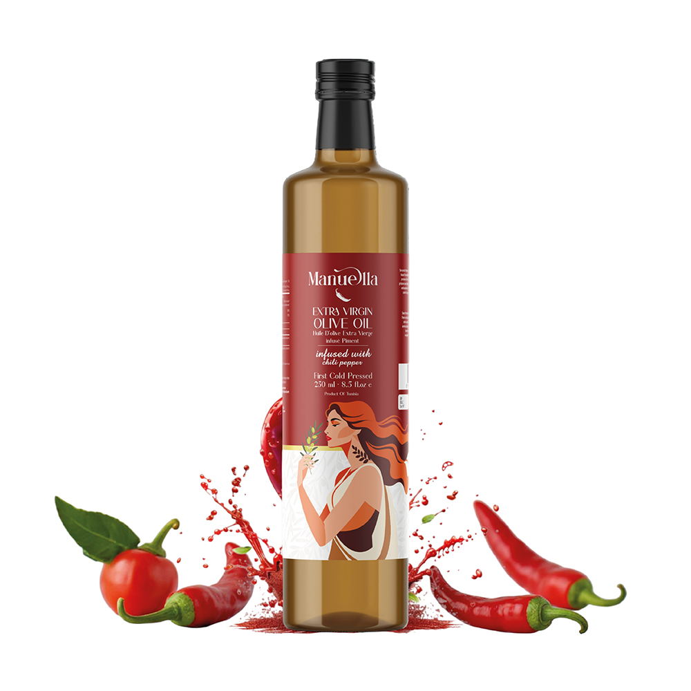 Notre Huile d’Olive Vierge Extra Infusée au Piment est une création audacieuse qui marie la richesse d’une huile d’olive première pression à froid avec l’intensité contrôlée de piments soigneusement sélectionnés Cette huile pimentée artisanale apporte caractère, profondeur et une chaleur progressive à vos plats, sans agressivité.